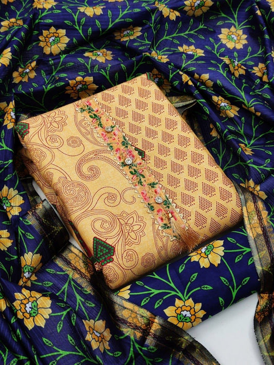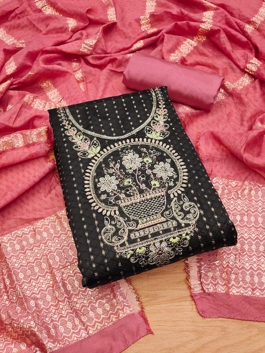 Women's Jaqcard Embroidery Work Unstitched Salwar Suit Dress Material