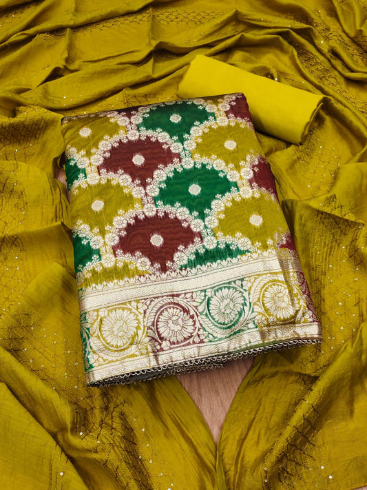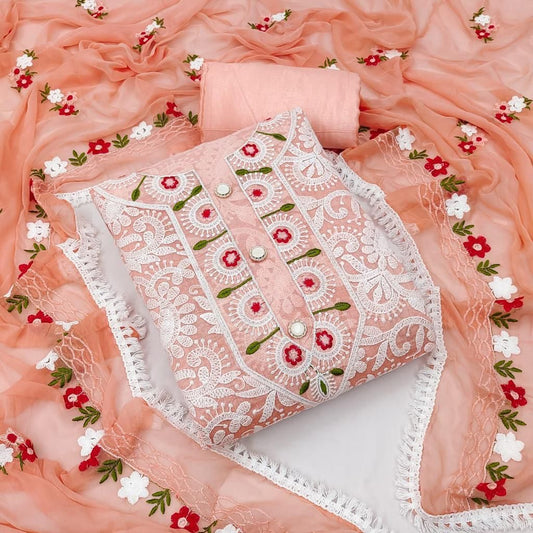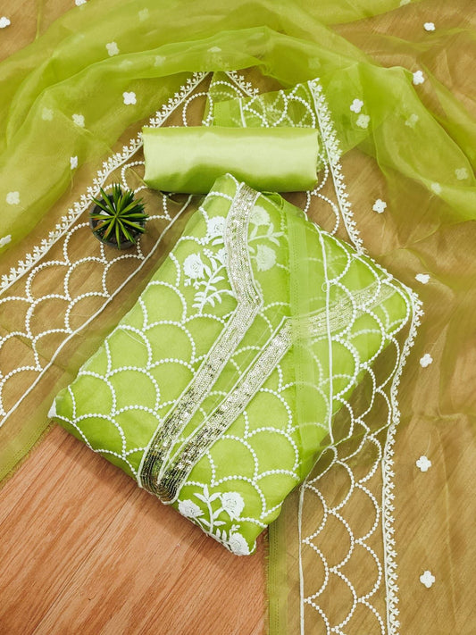 Women's Orgenza Embroidery Work Unstitched Salwar Suit Dress Material