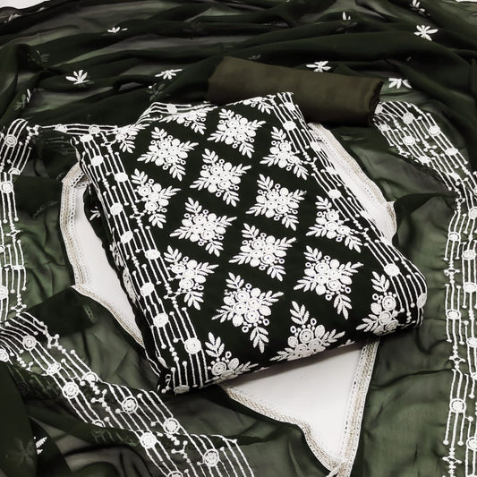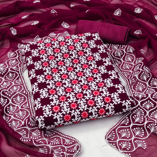 Unstitched Georgette Salwar and Dupatta Material Embroidered