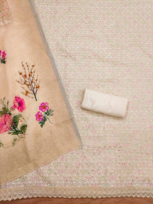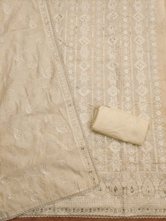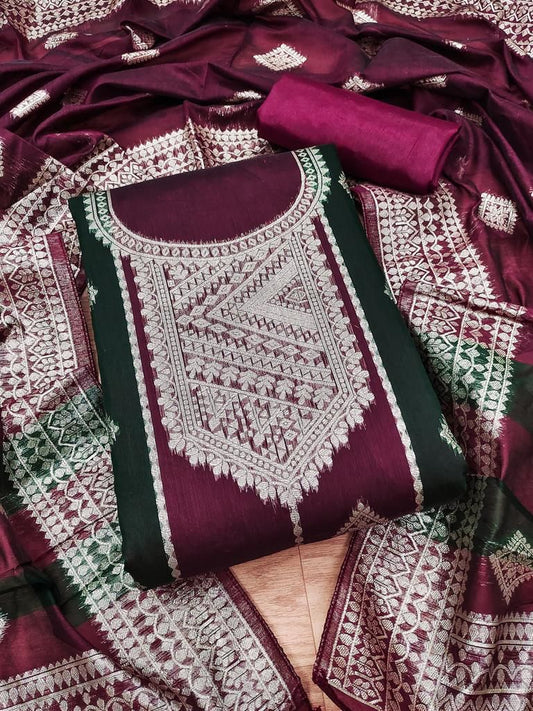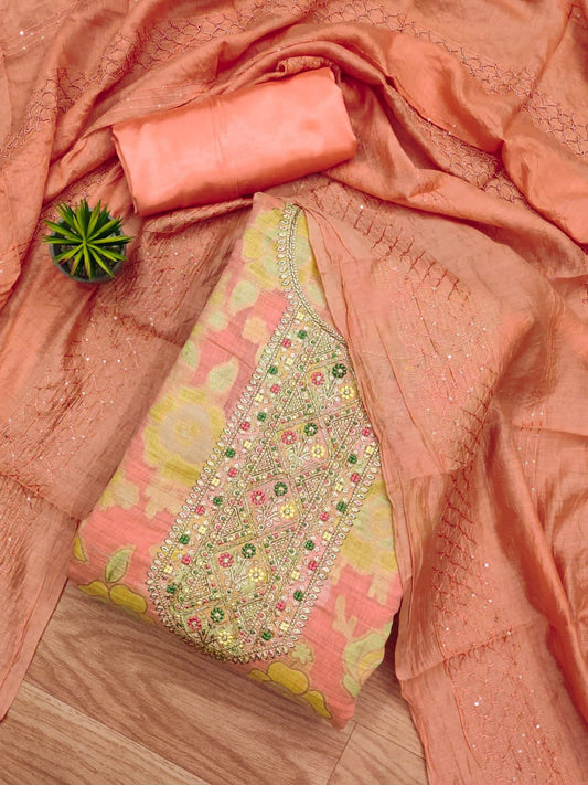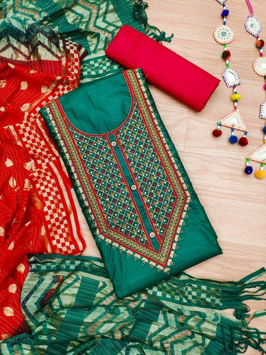 Unstitched Chanderi Salwar Suit Material Embroidered