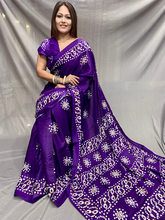 Art Silk Bandhani With Zari Waving Box Pallu