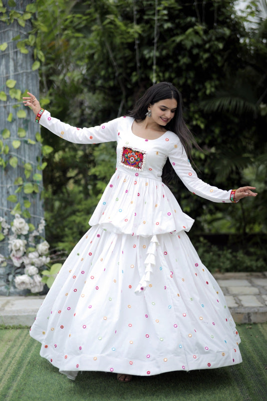 Attractive Reyon Real Mirror Works Lehenga Choli Dupatta Set