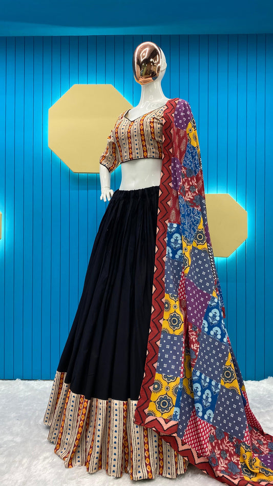 Awesome Black Digital Printed Navratri Wear Lehenga Choli