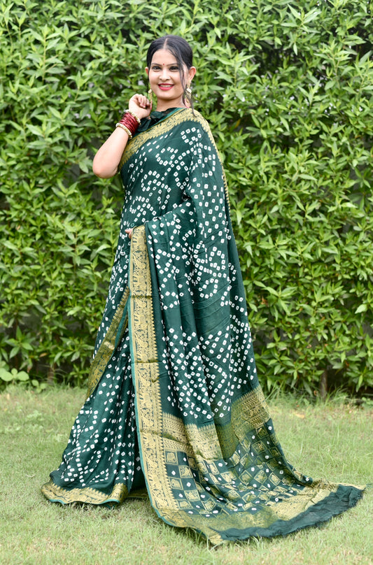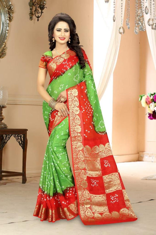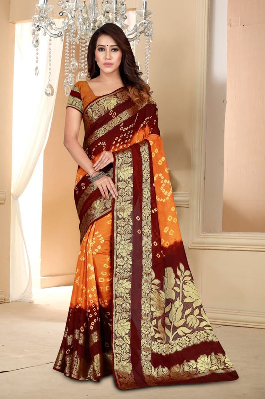 Art Silk With Zari Waving Rich Pallu Bandhani Saree