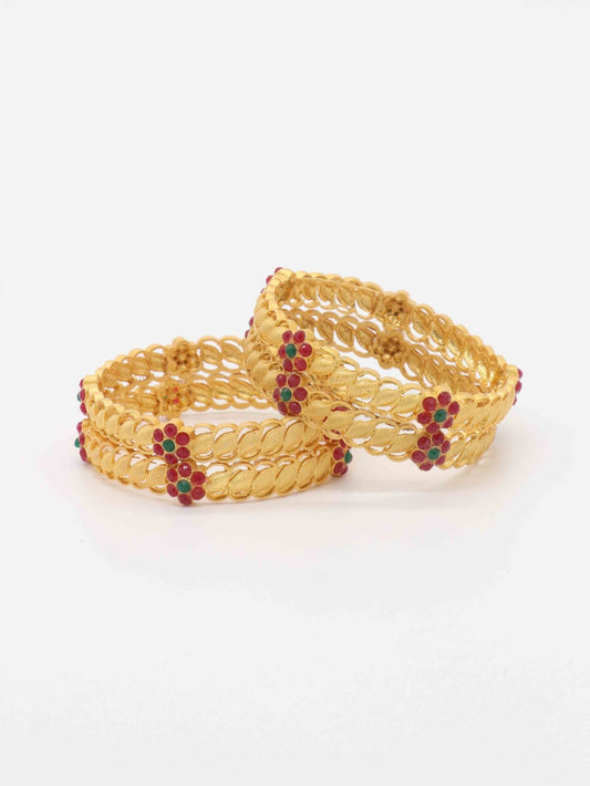 The Pink Lotus | 18K Gold Plated Traditional Ruby Bangles for Women/Girls studded with AAA+ Quality Cz