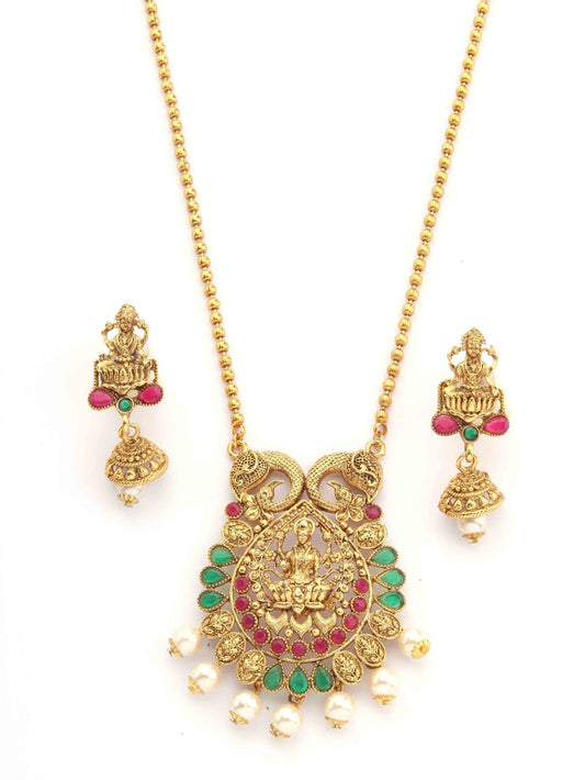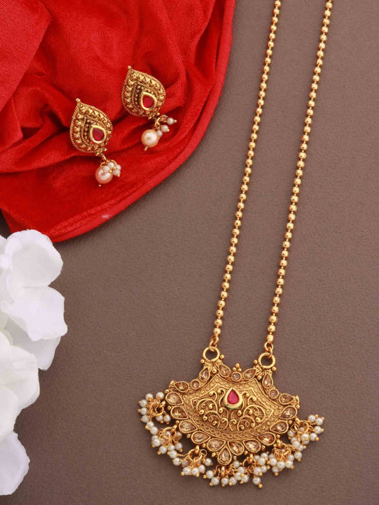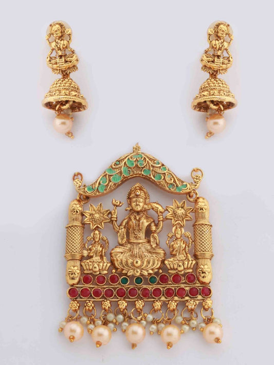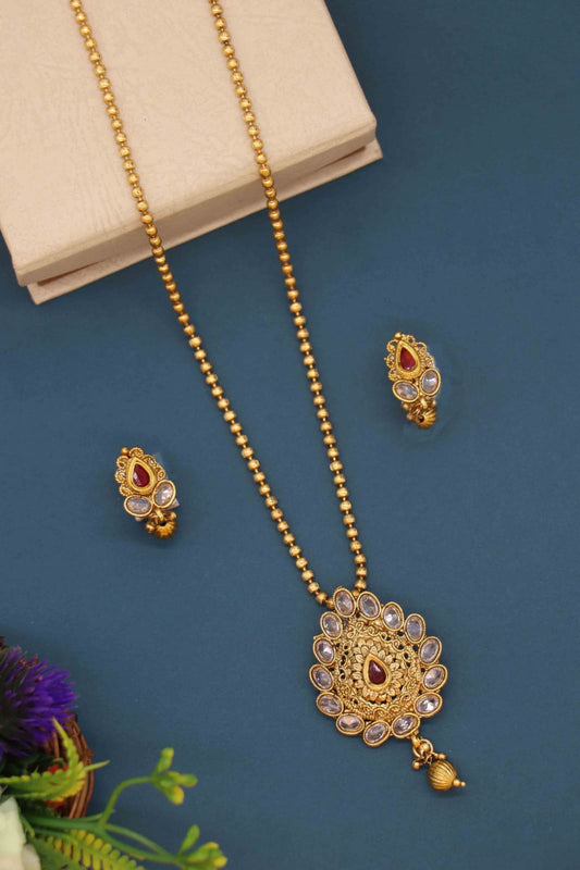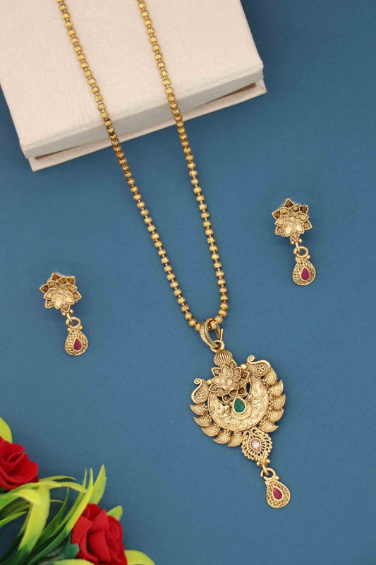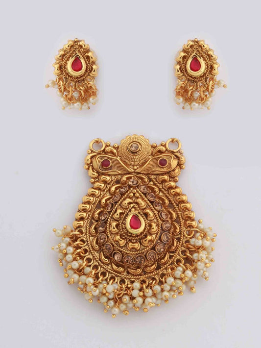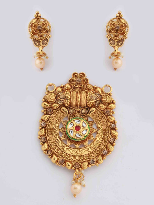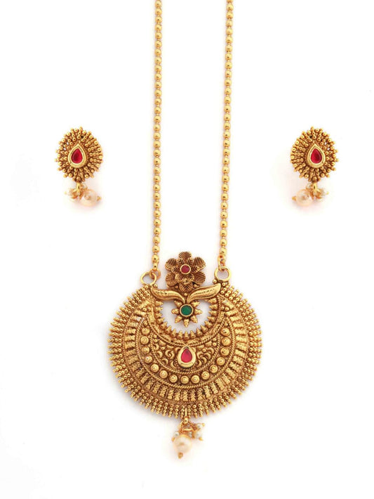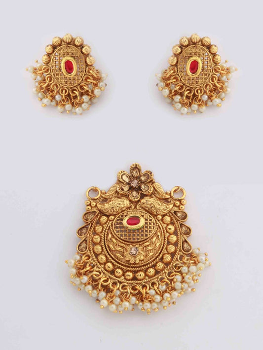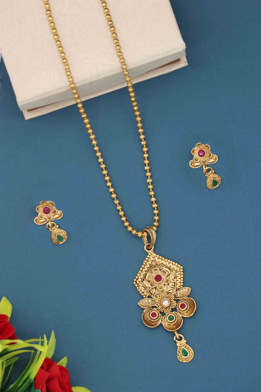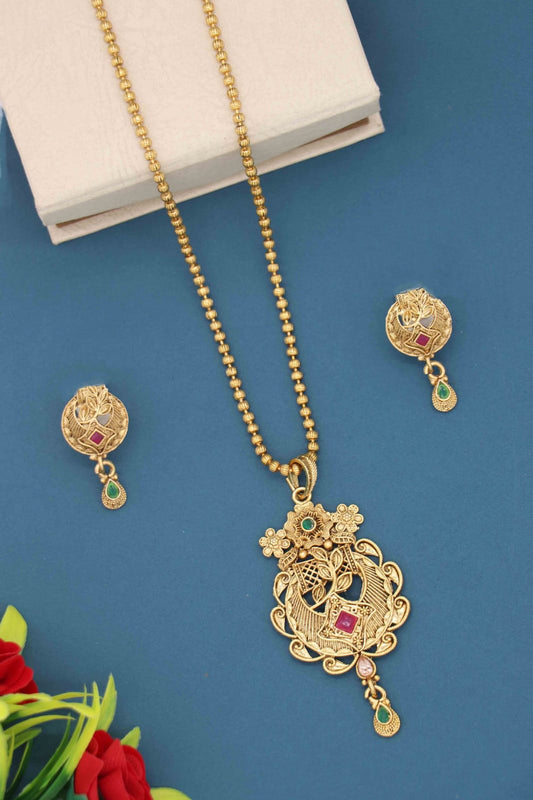 Traditional Ethnic Pendant Set with Stud Earrings and Bead Chain for Women and Girls