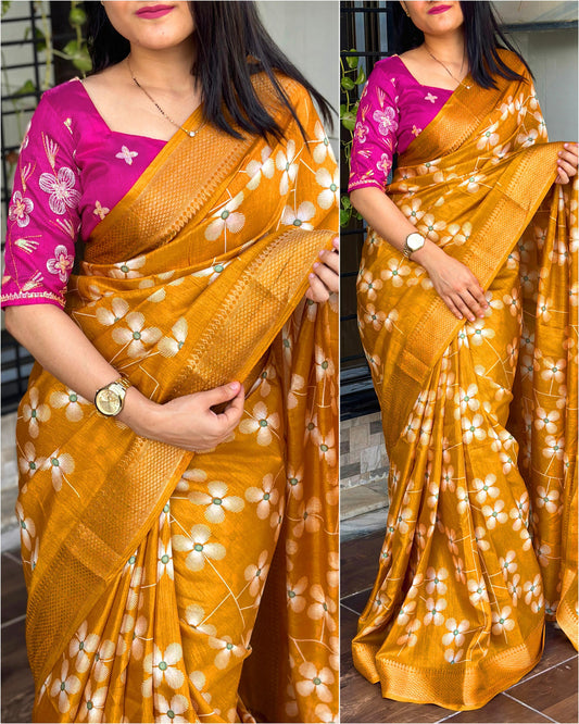 Beautiful Floral Organza saree with silk top for women Frill saree Indian saree Fancy saree