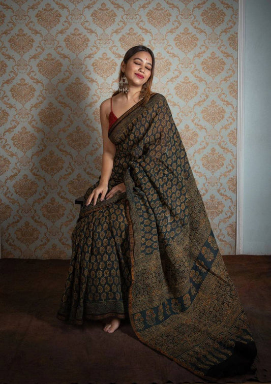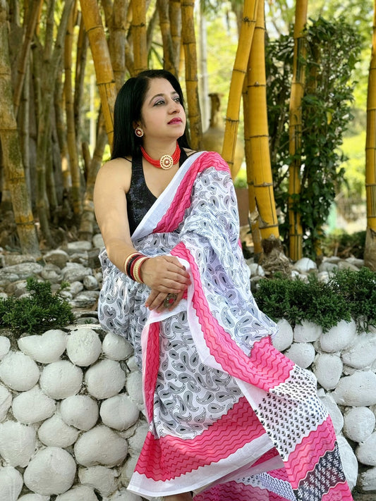 PURE COTTON JAIPUR BLOCK PRINT SAREES WITH BLOUSE PICE