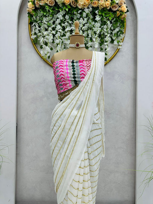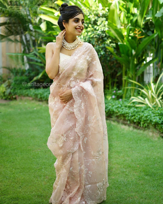 Looking for Sabyasachi Designer Pinkish Georgette Saree In trending Sequence Work &malbury satin Blouse