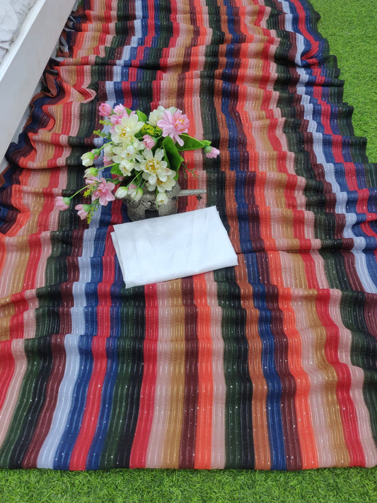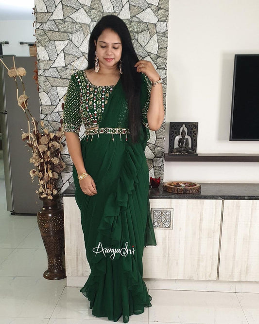 Beautiful Floral Organza saree with silk top for women Frill saree Indian saree Fancy saree