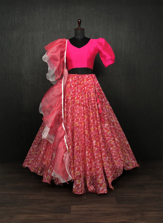 Red Designer Digital Printed Readymade Lehenga choli Set