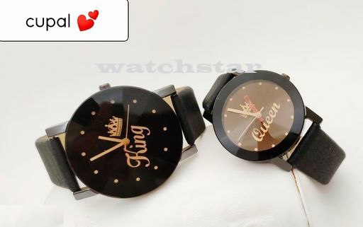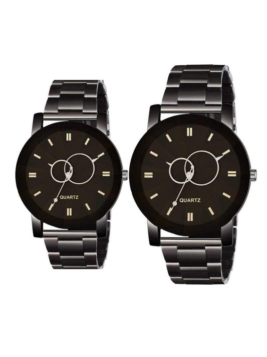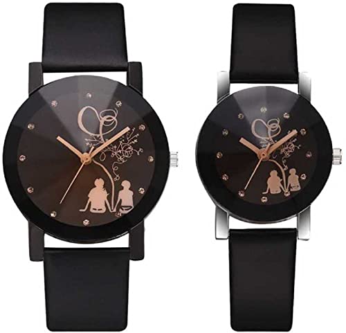 Analogue Black Dial Leather Belt Men & Women Love Couple Watch - Popularr Couple Pack of - 2