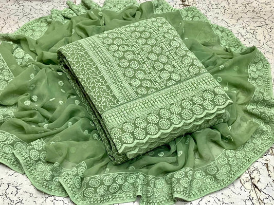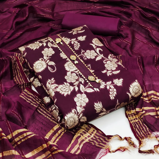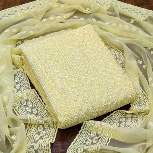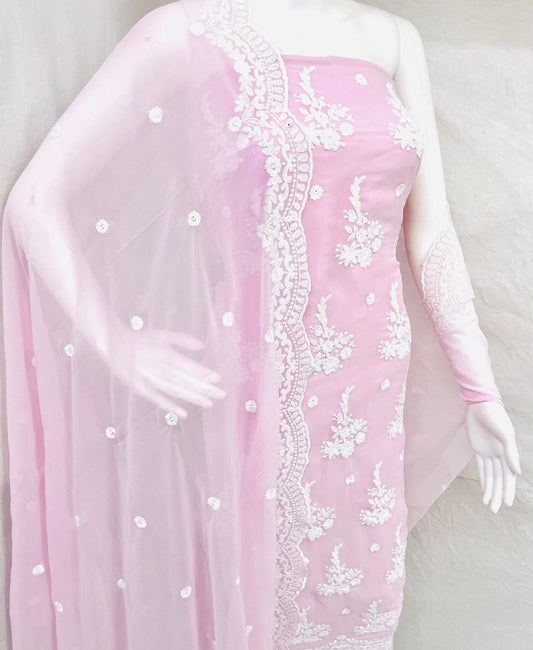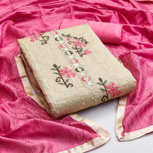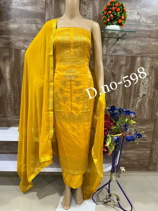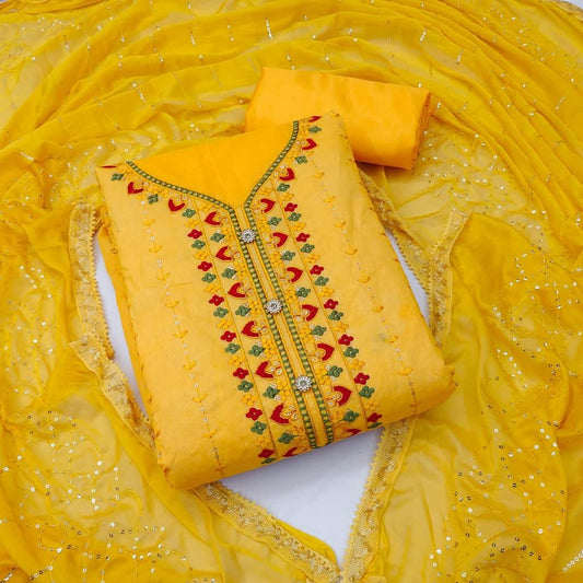 Modal Chanderi Silk With Handwork Georgette Work Dress Material