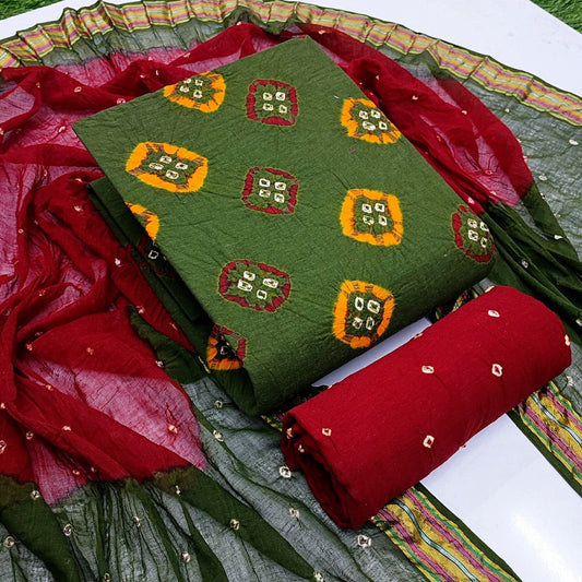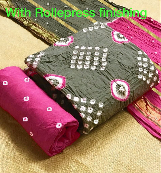 Fancy Pure Satin Cotton Bandhani Dress Material