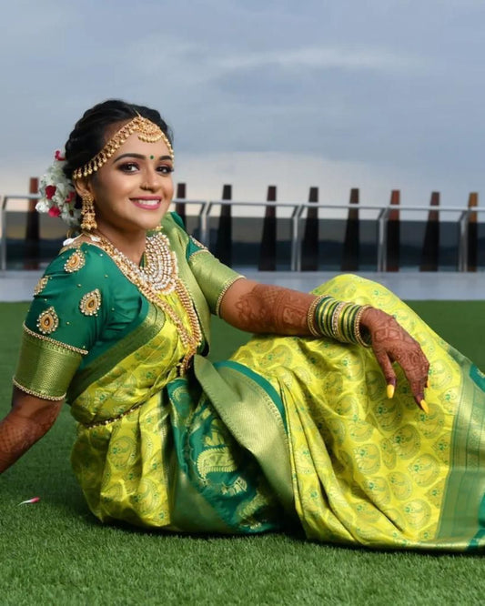 Woven Kanjivaram Pure Silk saree Yellow