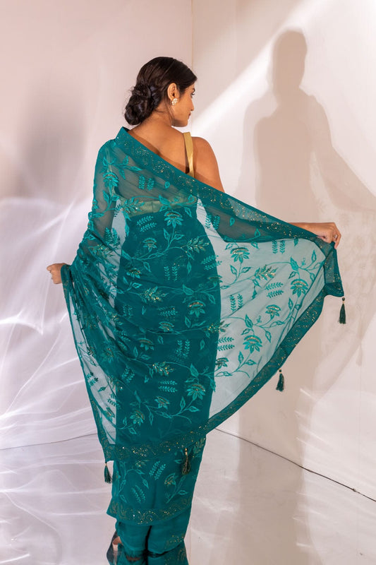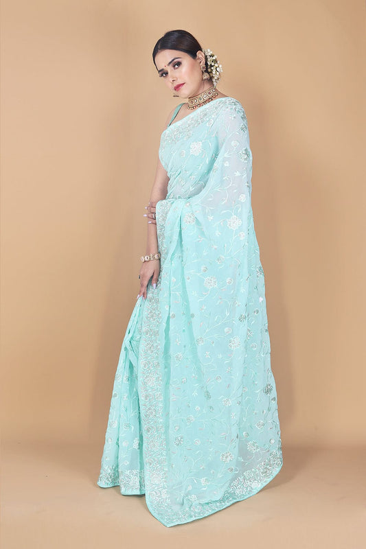 Georgatte Embroidery With Foil Print Saree