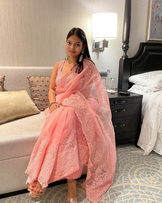 New Beautiful Hevy Thread Embroidered Work Saree