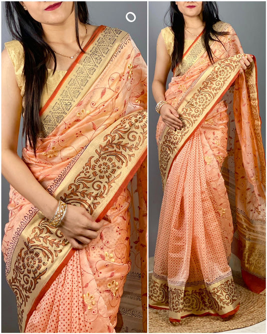 Soft Cotton Organza Hand Block Print Saree