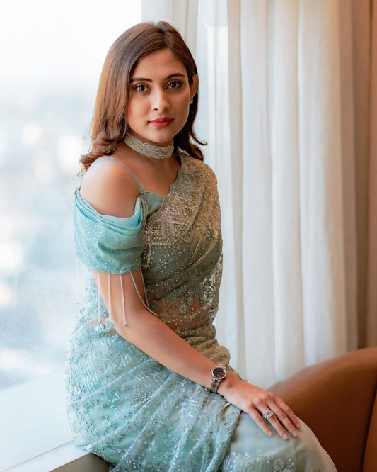 Designer Exclusive New Hevy Butterfly Net Sequance Embroiedery And Stone Work Saree With Blouse