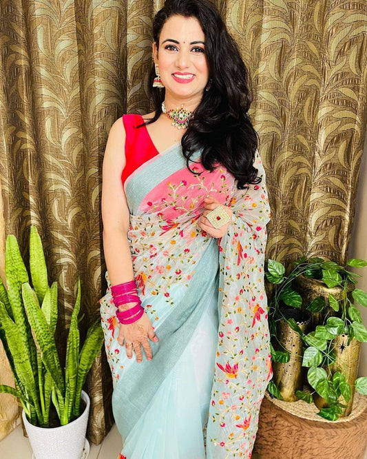 Soft Blue Beautiful Rich Pallu Saree