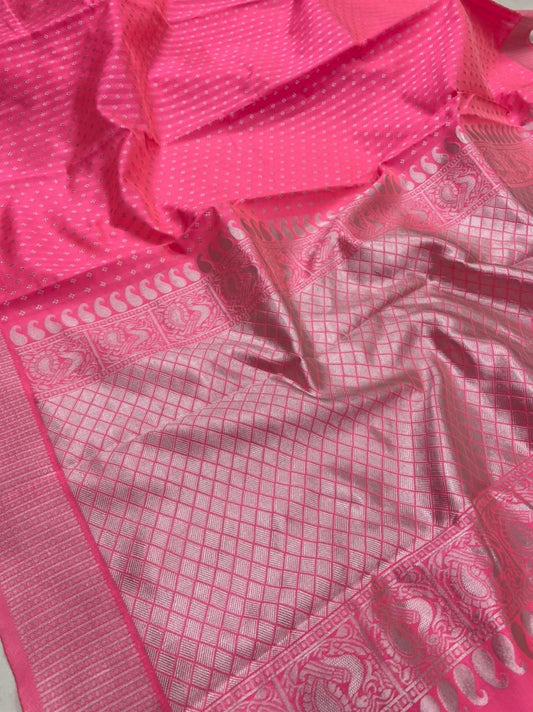 Pink Soft Lichi Silk Cloth Saree