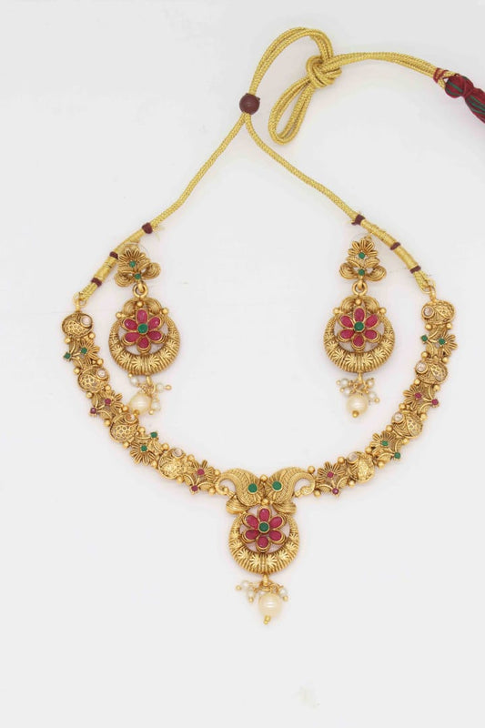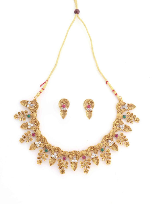 Fashion South Indian Traditional Festive Gold Plated Necklace Set For Women & Girls