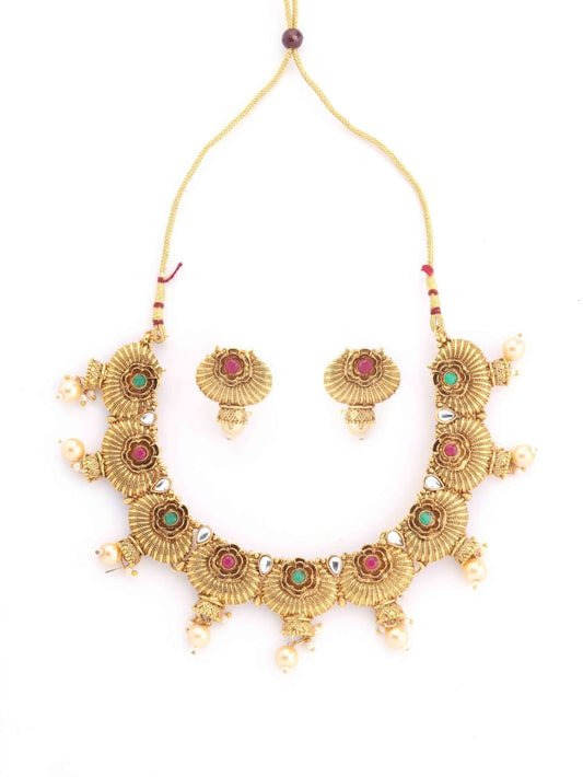 Fashion Jewellery Ethnic Gold Plated Necklace Set for Women