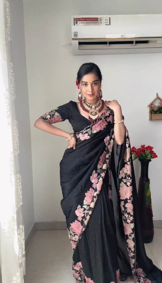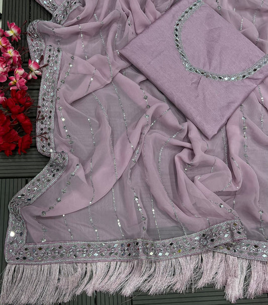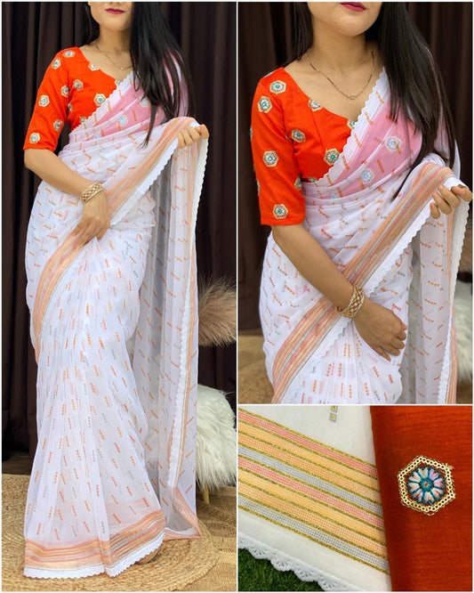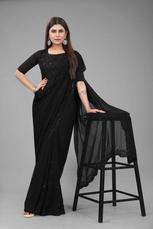 New Exclusive party wear outfit sequence work Faux Georgette saree sequence Embroidery , sequence work Unstiched blouse, stiching available