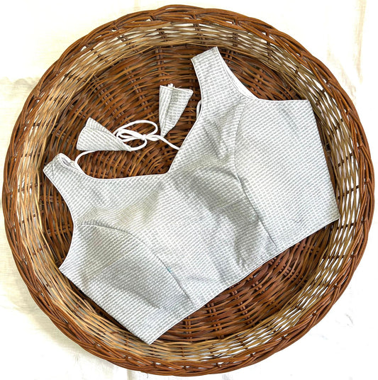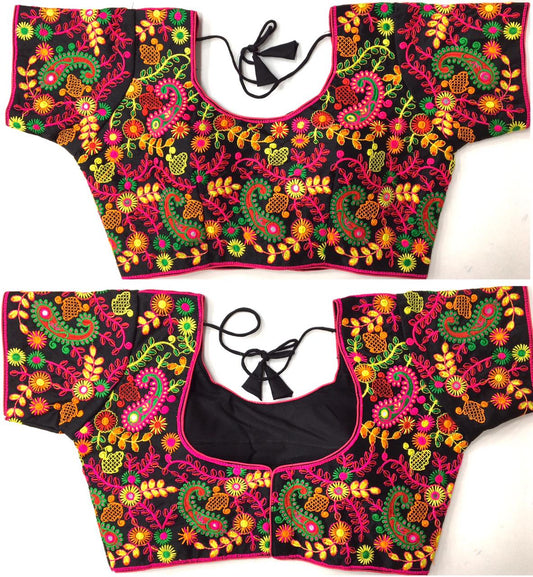 BLOUSE HAS THREAD WORK AND FOIL MIRROR WORK