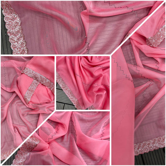 Exquisite Georgette Saree with Lace Detailing: Effortless
