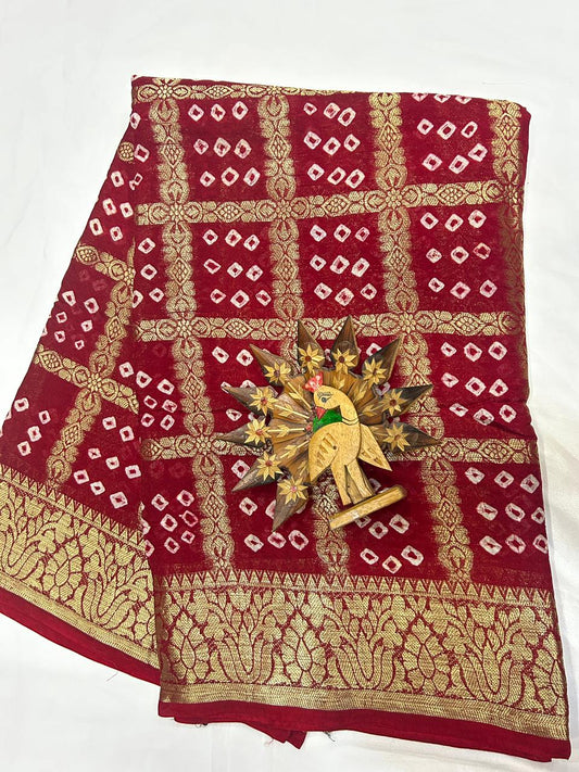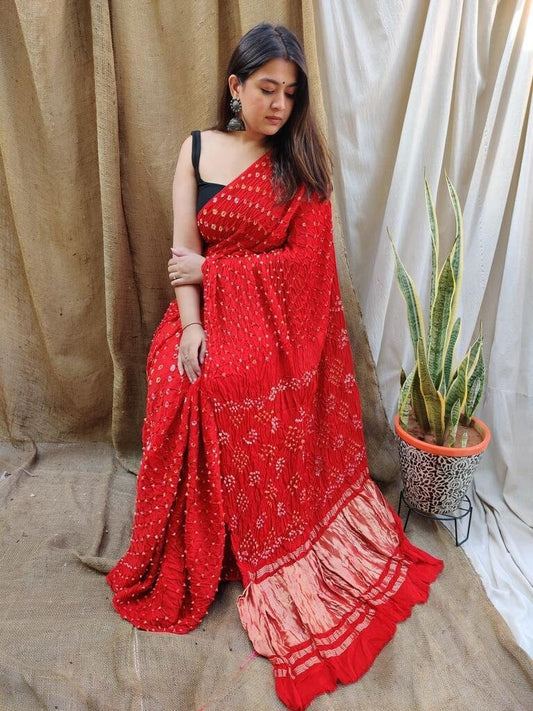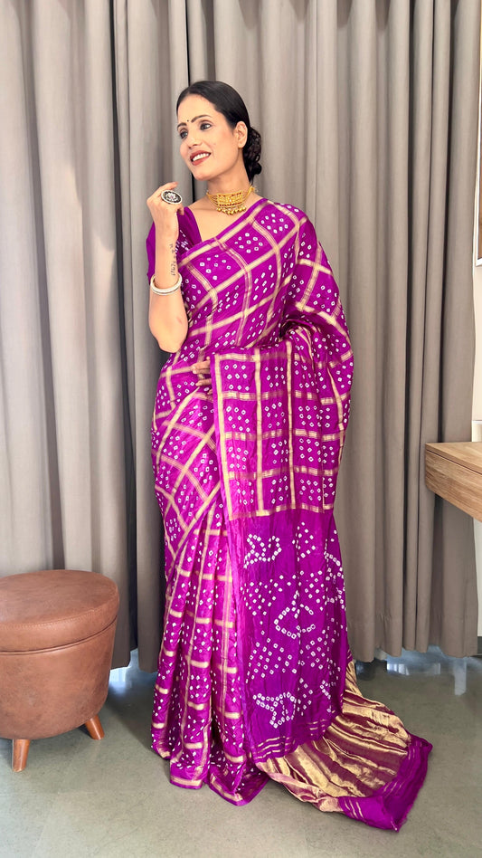 Luxurious Elegance: Pure Modal Gajji Silk Hand Bandhani Saree