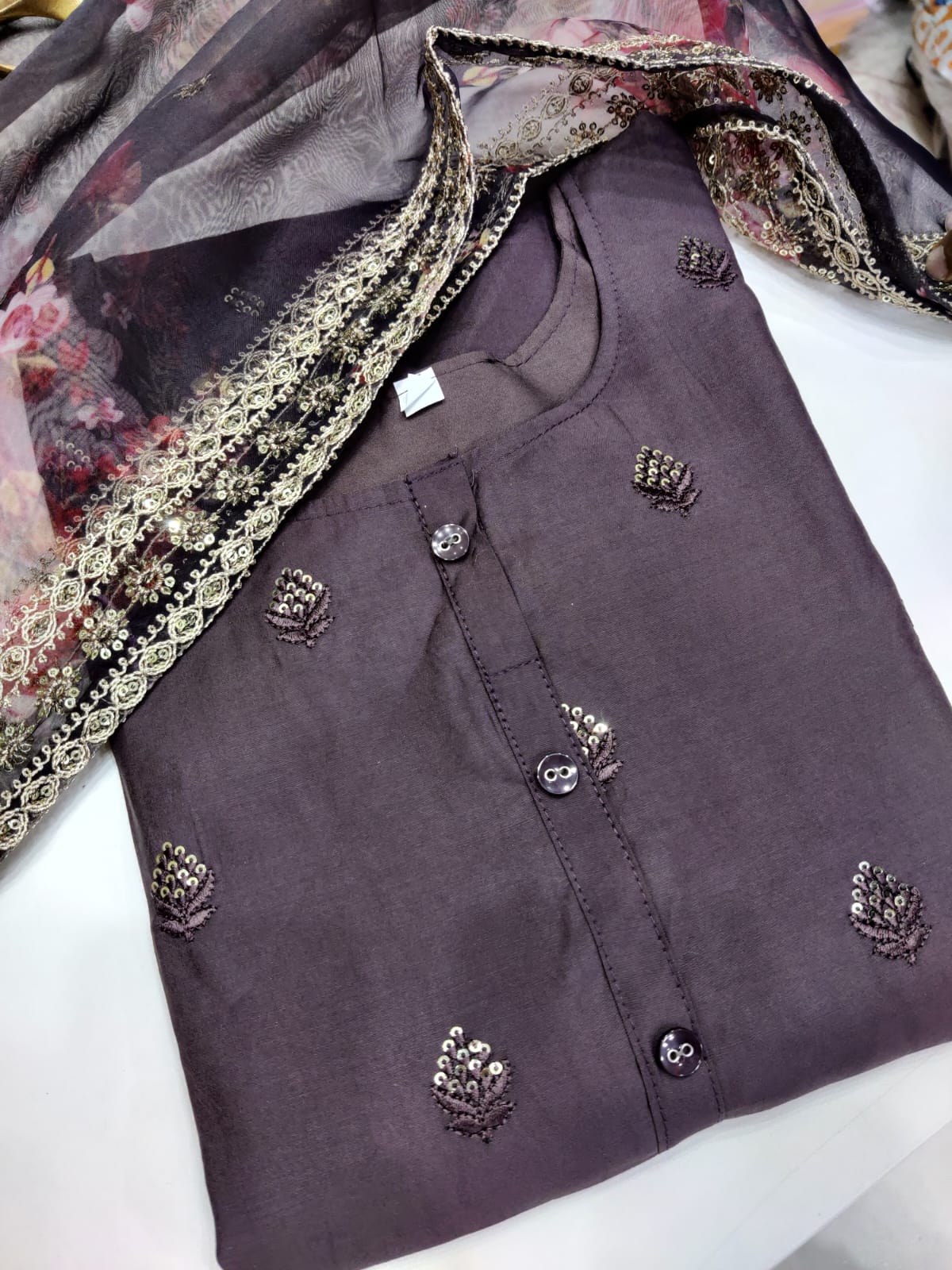 Kurti-Sequin embroidery works with tone to tone thread on kurti